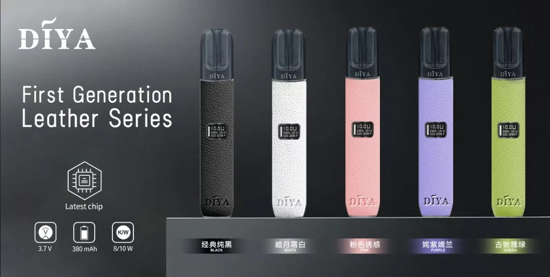 DIYA 皮革電子煙主機以義大利進口皮革為亮點,結合細膩紋理與流線外觀,手感舒適且不易打滑。五種時尚配色滿足不同使用者的個性需求,不論是通勤族還是聚會場合,都能展現獨特品味。