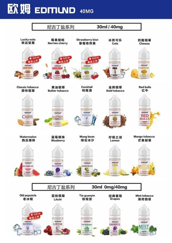 In today’s increasingly competitive vaping market, finding an e-liquid that balances flavor, strength, and quality has become a top priority for many pod system users. Today, we’re introducing the highly acclaimed Edmund Nicotine Salt E-Liquid (30ml / 40mg) – crafted specifically for pod devices, delivering refined layers of flavor and ultimate satisfaction with every puff.
