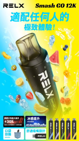 RELX Smash Go 12000 是將「便利性、續航力與口感品質」整合於一身的一次性電子煙,適合想要一支就撐很久、又不妥協口感的使用者。
